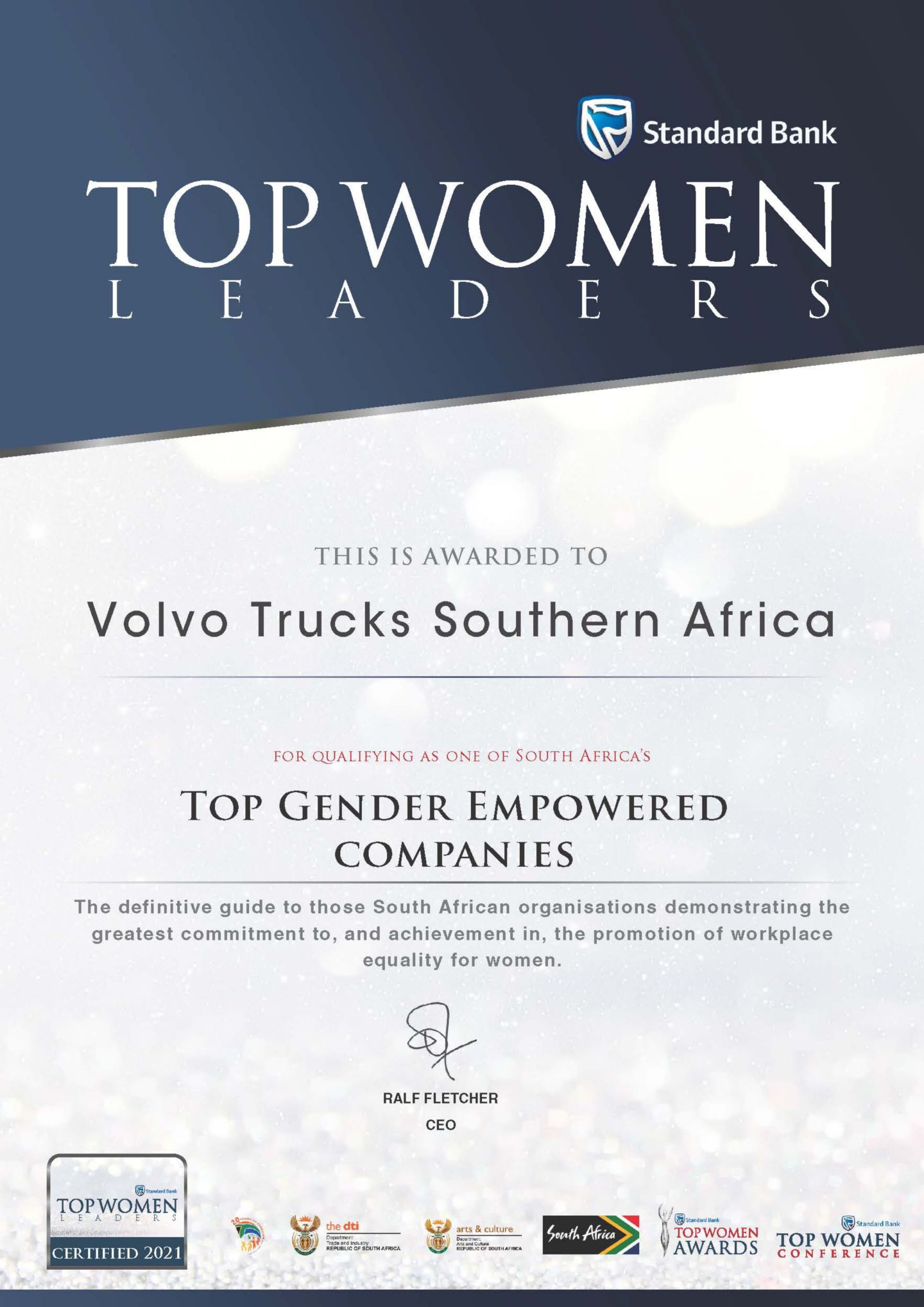 This award comes after months of rigorous research and benchmarking of the company’s structure, policies, skills development, and female-specific CSR expenditure. Also taken into consideration was the number of female directors, senior management, and employees. Volvo Trucks South Africa’s top management team currently consists of 67% women.